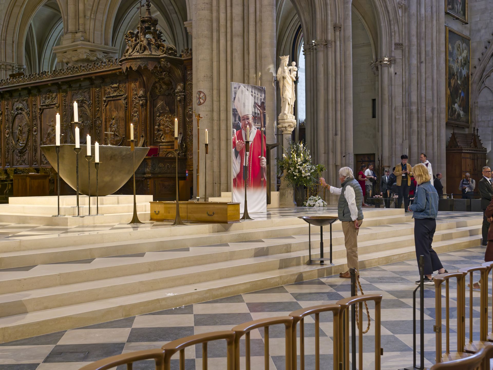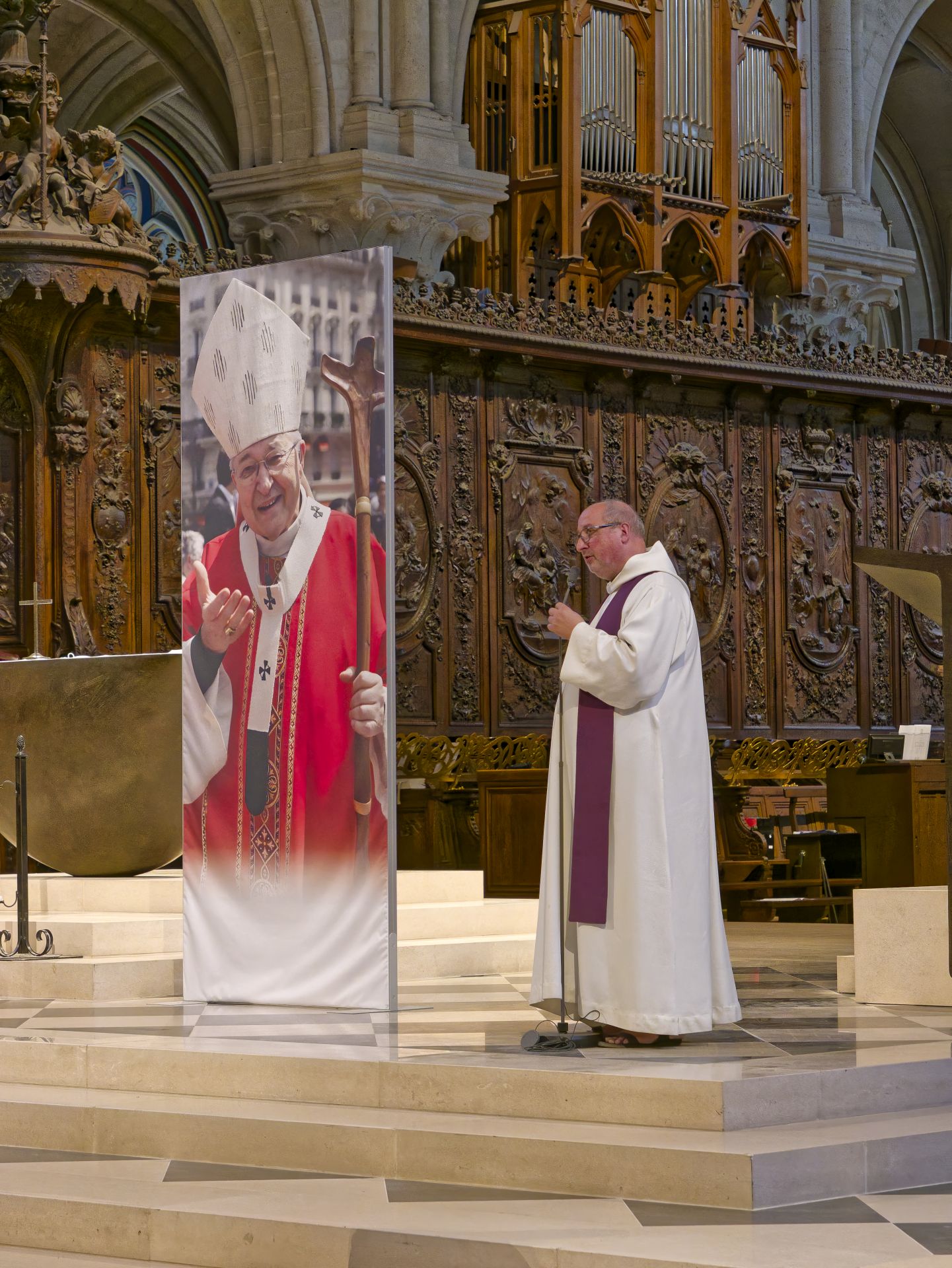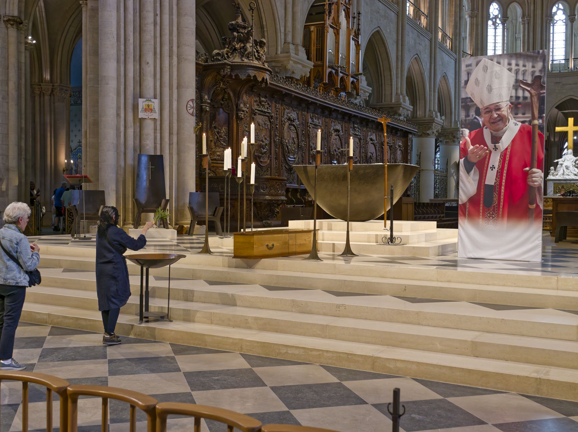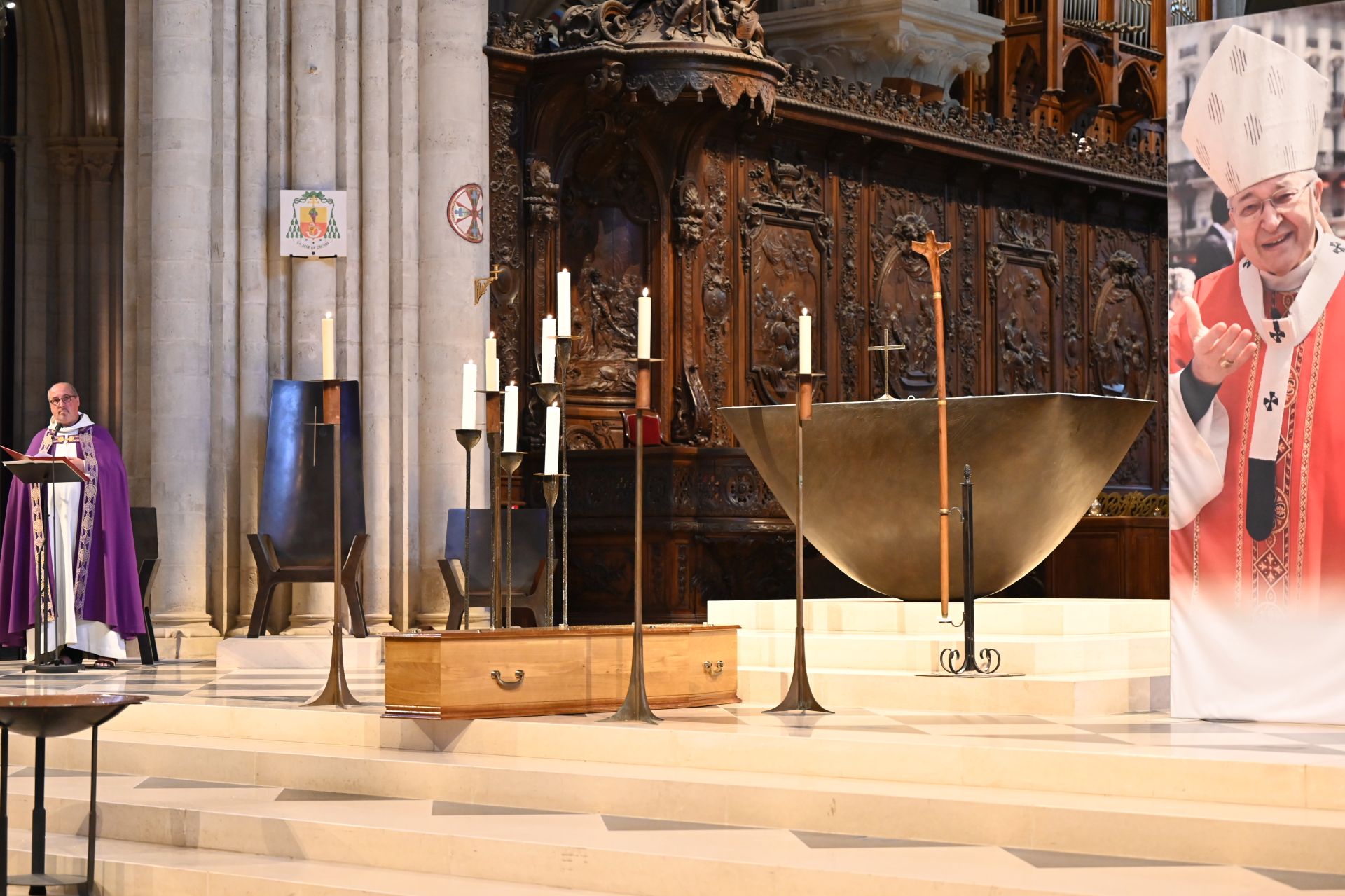 – À 13h, le corps de Mgr André Vingt-Trois a été transféré à la basilique métropolitaine où les fidèles ont pu le bénir durant l’après-midi et laisser un message de condoléances.
